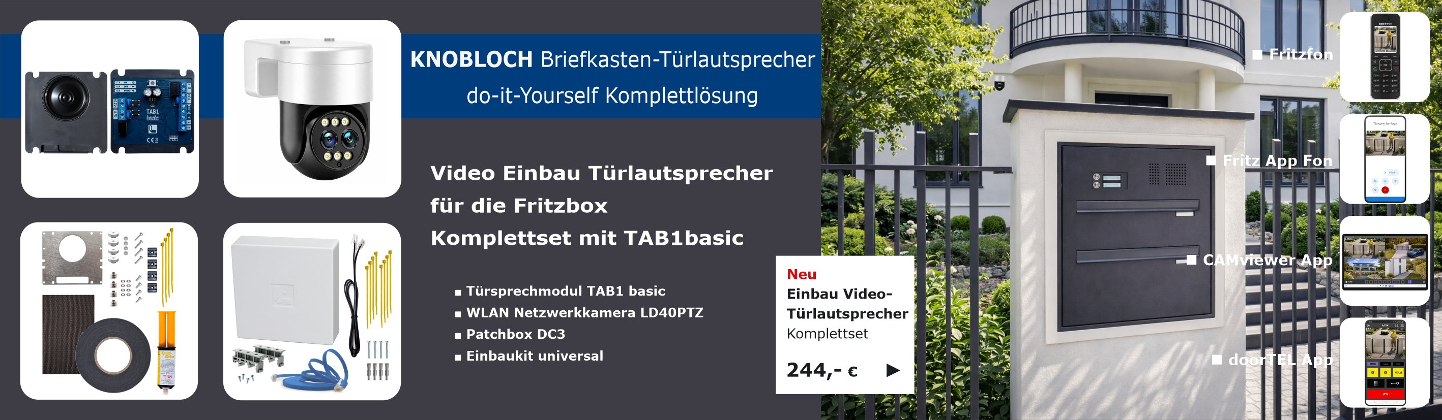 ■ Türsprechmodul TAB1basic ■ WLAN Netzwerkamera LD40PTZ ■ Patchbox DC3 ■ Einbau Kit Universal