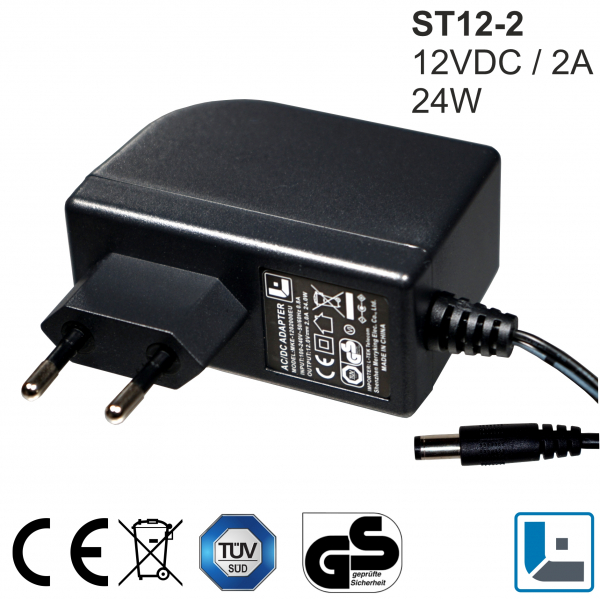 Betriebsspannung: 230V/50Hz Leistung: 24W max. Ausgangsspannung: 12VDC kurzschlussfest Ausgangsstrom: 2,0A max. Sicherheitszertifikate: CE / TÜV / GS / RoHS / WEEE