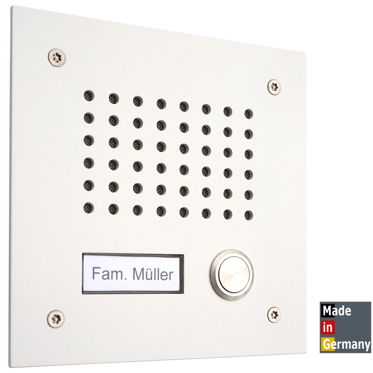 ■ Türstation mit Frontplatte aus Aluminium weiss beschichtet