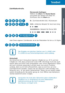 oder Ihren eigenen Zutrittscode. n ist der Platzhalter für bis zu 10 Digits.